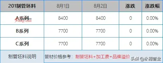 201方面,青山代理報8-9月資源:鼎信J2-7700元/噸;J3-8000元/噸;J1-8400元/噸;J4-9000元/噸。其他產地資源代理報價依舊維穩,但貿易商報價多見低于代理價格50元/噸以內進行銷售,廣西窄帶含稅偏向靠攏7650元/噸。個別中頻料低價在7600元/噸附近,并且有送貨政策。大板方面,鼎信資源有向弱跡象,貿易商報J2料含稅7680元/噸基。另外,寶鋼T4料低位在含稅7600元/噸等待成交。