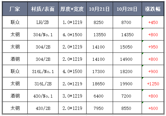 304市場同樣陷入“洶漲”模式,單日漲幅高達300~500元/噸,甚至出現(xiàn)了單日多次調(diào)漲的現(xiàn)象。短短幾天的時間,基價已有超出了15000元/噸。316L冷熱軋產(chǎn)品的漲勢也十分火爆,周間漲幅也有達1000元以上。430價格也同時逃不出漲價氣氛,太鋼市場價格已經(jīng)直指8550!