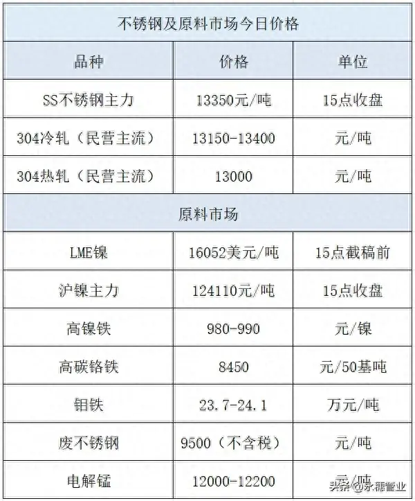 截止周五,304冷軋/熱軋主流資源價(jià)格均累計(jì)下跌100元/噸。目前304冷軋成交價(jià)格在13200元/噸毛基,304熱軋成交價(jià)圍繞13000元/噸展開。
