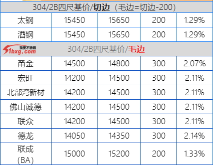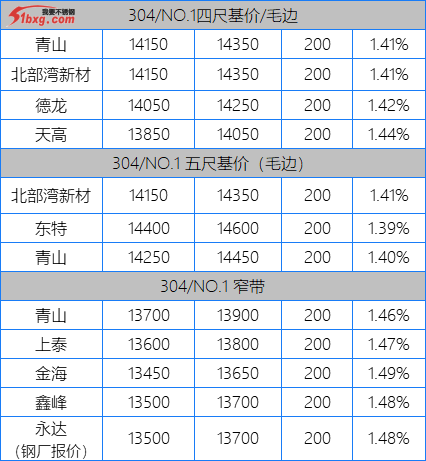 從報價來看,市場多次調漲報價后,整體累計漲200-300元/噸。從成交來看,304不銹鋼水管市場貿易商反饋出貨尚可,如大板的一些較好規格于早上已被“搶走”,個別產地現貨有缺,但市場貿易商反饋稱,北部灣新材資源在下周有到貨,今日訂貨能優價??磥?,市場還是要在漲價的時候才有買賣的動力。另外,青山鋼廠雖然未對304熱軋啟動新盤價,但是有消息稱,鋼廠允許代理以成本價14300元/噸補點大板現貨!