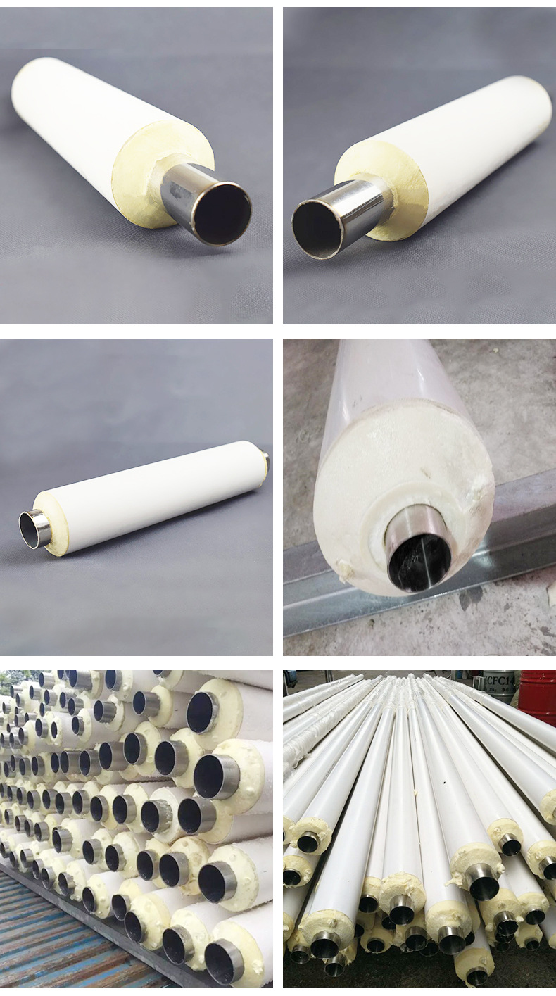 聚氨酯發(fā)泡保溫管為當(dāng)下熱水工程采用的一種新型環(huán)保,節(jié)能,高效的保溫?zé)崴埽哂型庑蚊烙^、安裝連接方便、保溫效果好、健康環(huán)保等特點(diǎn)。聚氨酯發(fā)泡保溫管的內(nèi)芯管采用優(yōu)質(zhì)薄壁不銹鋼水管,保證過熱水管道質(zhì)量穩(wěn)定;外管采用PVC硬管,具有抗沖擊,抗壓,保證管材在運(yùn)輸、安裝和使用過程中免受破壞;中間層是采用優(yōu)質(zhì)聚氨酯成型的保溫層,保溫層緊密粘附內(nèi)外管并充分填滿之間空隙,使管道、外套及保溫層三者形成一個(gè)牢固的整體,保溫效果好。